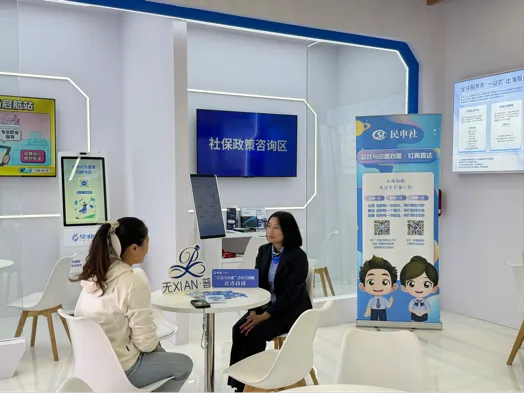 针对群众普遍关心的“参保险种及缴费标准”“工伤处理流程”“多地社保合并”等热点问题,青年讲师们结合日常实际经办案例,提供了权威解答和个性化指导。同时,结合展区中专业服务型、人力资源型企业和外籍人员较多的特点,分中心青年讲师们主动出击,与企业参展人员交流,重点围绕外籍人员参保的相关政策进行解读,用流利的表达、扎实的业务功底和热情的服务接待,将复杂的政策条文转化为助力企业发展的实用信息。现场共发放了社保政策宣传折⻚百余份,接待咨询120余人次。