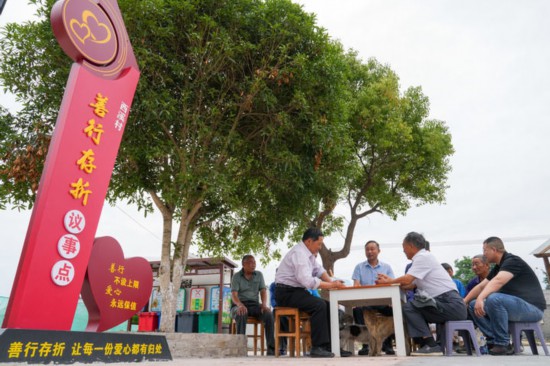 2025年6月12日,在江苏省宝应县广洋湖镇西溪村,当地党群服务中心的工作人员组织村民进行议事会。新华社记者 李博 摄