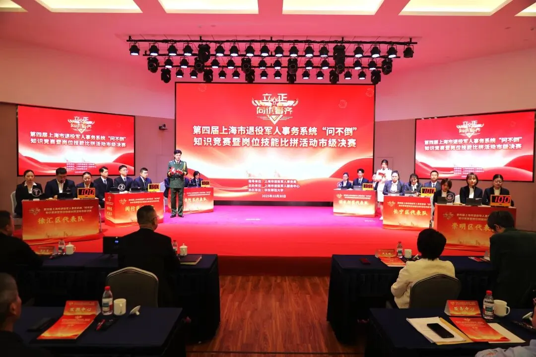 10月30日下午,由上海市退役军人事务局主办,上海市退役军人服务中心、华东师范大学承办的第四届上海市退役军人事务系统“问不倒”知识竞赛暨岗位技能比拼活动决赛在上海双拥大厦举行。市退役军人事务局党组成员、副局长严玉鹏出席活动。 来自闵行、长宁、普陀、徐汇、浦东和崇明区退役军人事务系统的18名青年干部代表参加决赛。本次决赛环节设置开场展示、必答题、抢答题、情景模拟题、风险题等环节,并在往年基础上,参照全国退役军人服务中心(站)工作人员职业技能竞赛环节模式,增设团队题环节,重在考察参赛队伍的团队协同能力。决赛现场在全面展现参赛各区工作亮点和特色的同时,深入考察选手政策理解、业务实操、团队协作和来访服务等技能。 经过多轮激烈比拼,浦东新区退役军人事务局荣获一等奖,长宁区、闵行区退役军人事务局荣获二等奖,普陀区、崇明区、徐汇区退役军人事务局荣获三等奖。长宁区退役军人服务中心奚晓梁、闵行区退役军人服务中心王嘉赟荣获个人一等奖,闵行区莘庄工业区退役军人服务站赵英杰、嘉定区退役军人服务中心强舒菁荣获个人二等奖,浦东新区陆家嘴街道光辉居民区退役军人服务站周晨、普陀区退役军人服务中心姚怡蕾、长宁区退役军人服务中心徐小毛、普陀区甘泉路街道志丹居民区退役军人服务站瞿彬、闵行区吴泾镇退役军人服务站姚斌、青浦区华新镇退役军人服务站李小红荣获个人三等奖。 自活动开展以来,全市退役军人事务系统全体干部职工参加第四届“问不倒”知识竞赛暨岗位技能比拼活动,重点围绕退役军人工作业务,通过自我学习、集体研学和案例分析相结合的方式开展学习并集中进行线下闭卷笔试。在线下闭卷笔试中脱颖而出的区退役军人事务系统青年干部代表参加决赛。 开展第四届上海市退役军人事务系统“问不倒”知识竞赛暨岗位技能比拼活动旨在深入学习贯彻党的二十届四中全会精神和习近平总书记关于退役军人工作的重要论述,巩固中央八项规定精神学习教育成果,持续推进局系统模范机关建设,提升退役军人服务保障工作质效,促进党建与业务相融互促。活动期间,市退役军人事务局机关各处室、局系统事业单位、各区退役军人事务局切实把本次竞赛活动作为锤炼青年干部党性修养、提升履职能力与服务水平的重要抓手,引导广大干部职工以赛促练强本领、以学促用优服务。 自2022年起,市退役军人事务局已连续举办四届“问不倒”知识竞赛活动,成为全市退役军人事务系统锤炼工作队伍、检验工作能力和服务水平的工作品牌和重要平台。下一步,市退役军人事务局将持续深化“立正!向优看齐”主题实践,推进竞赛成果向基层一线工作实效转化,凝心聚力打造忠诚干净担当的高素质服务保障队伍,不断增强退役军人工作的责任感和使命感,助力“十五五”期间上海退役军人工作高质量发展取得新进展、新成效。 市退役军人事务局机关各处室、局属各事业单位,各区退役军人事务系统相关负责同志,相关区优秀退役军人代表以及本市媒体代表100余人参加活动。