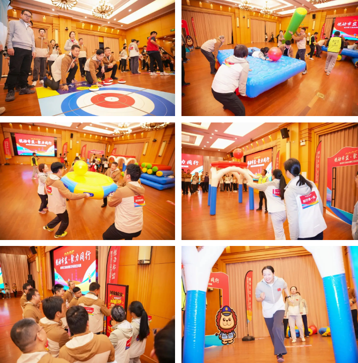 主会场同步开展“嘉年华”趣味运动会,团体项目与个人项目各具特色、精彩纷呈。“众星捧月”等团体项目,充分考验了参赛队伍的协作意识与默契程度,队员们在趣味中激发活力,在欢声中释放压力,在并肩作战中凝聚起攻坚克难的合力;“好运投投看”“挑战十秒种”等个人项目,也吸引机关会员踊跃参与。赛场上气氛热烈活跃、欢声笑语不断、呐喊助威声此起彼伏。