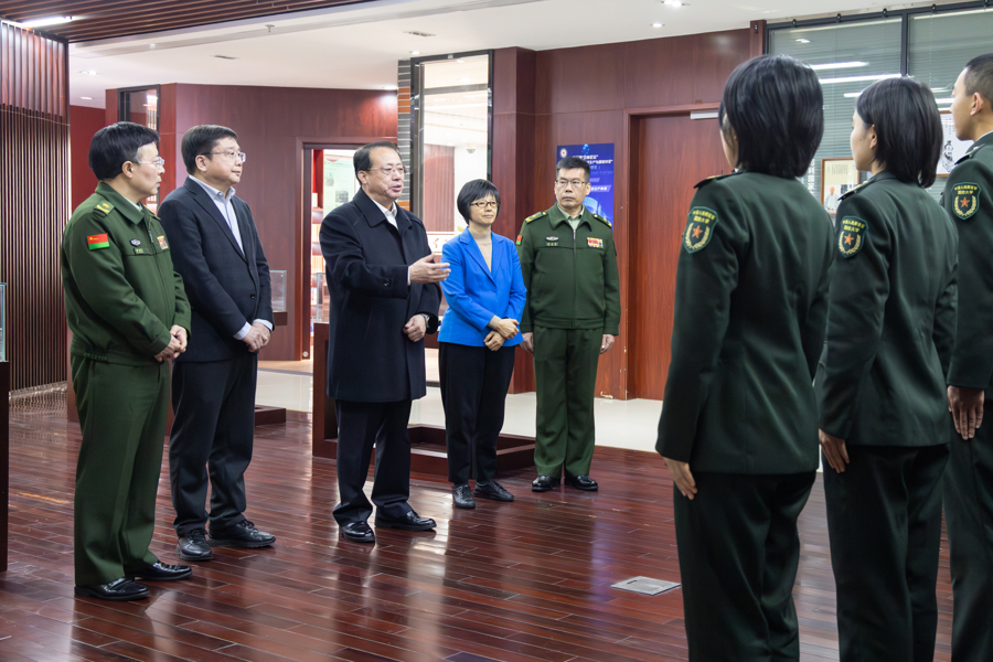 国防大学政治学院是全军培养政治工作人才的专业学院,学院警通勤务连现有官兵90余人,政治过硬、业务过硬、作风过硬,近年来荣获多项荣誉。龚正一行走进学院信息化大楼,察看《共产党宣言》情境教学馆、“学习书苑”等,了解学院建设发展、教学科研、军民共建等情况,并看望慰问正在组织理论学习的官兵,向大家致以新春祝福。龚正代表市委、市政府,感谢广大驻沪官兵积极参与、全力支持上海经济社会发展,为城市平安和谐、人民幸福安康日夜坚守、无私奉献。龚正说,今年是“十五五”开局之年,上海正按照习近平总书记作出的战略擘画,加快建成具有世界影响力的社会主义现代化国际大都市,在推进中国式现代化中充分发挥龙头带动和示范引领作用。上海将认真落实拥军优属各项政策措施,一如既往支持驻沪部队建设,为广大官兵排忧解难,军民携手、紧密协作,不断巩固发展军政军民团结的良好局面,为如期实现建军一百年奋斗目标作出更大贡献。