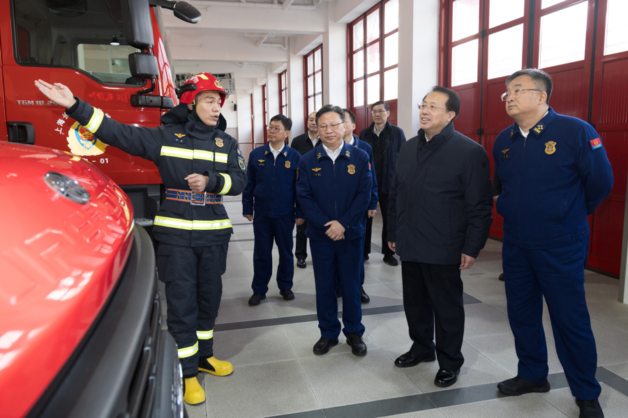 市消防救援指挥中心是上海消防救援的中枢平台。龚正一行来到中心,检查消防应急值守情况,察看消防救援“一网统管”平台,了解接警调度、风险排查情况,详细询问春节消防应急预案、消防力量驻守等情况,并与各消防分指挥中心视频连线。龚正指出,要绷紧安全这根弦,充分估计风险,抓好责任落实,加强精准管控和联动配合,打好长假期间消防安全防范这场硬仗,确保市民度过一个欢乐、平安、祥和的春节。随后,龚正来到长宁消防救援站,察看特种车辆装备和通讯室,并看望慰问一线消防指战员。